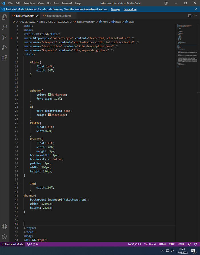 Die Aufgabe bestand darin, eine bestehende HTML-Datei mit Designverbesserungen zu überarbeiten. Ziel war es, die Benutzerfreundlichkeit zu optimieren und Inhalte ansprechend darzustellen. Dabei sollten Links im linken Bereich neugestaltet, Hover-Effekte hinzugefügt und Boxen im rechten Bereich angepasst werden. Zusätzlich wurden dort spezifische Inhalte eingefügt.